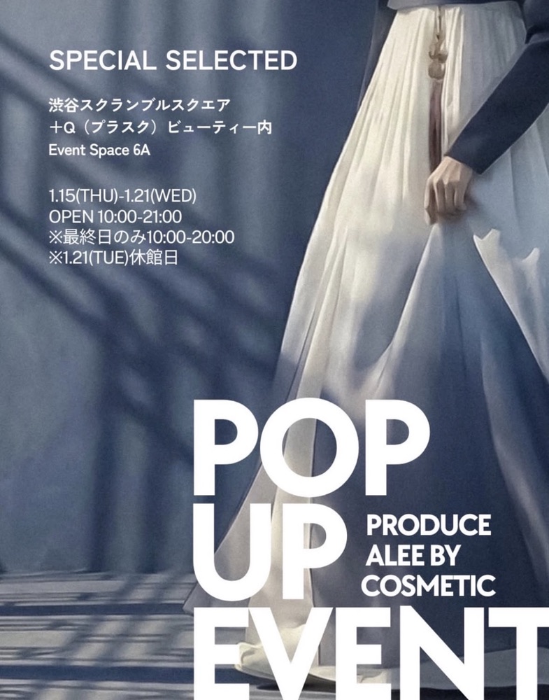 芸能人やYouTuberの方々も利用されている、六本木のコスメセレクトショップALEE開催のPOPUPにて、当社の製品(ボディエマルジョンEX)を販売いただくことになりました。
